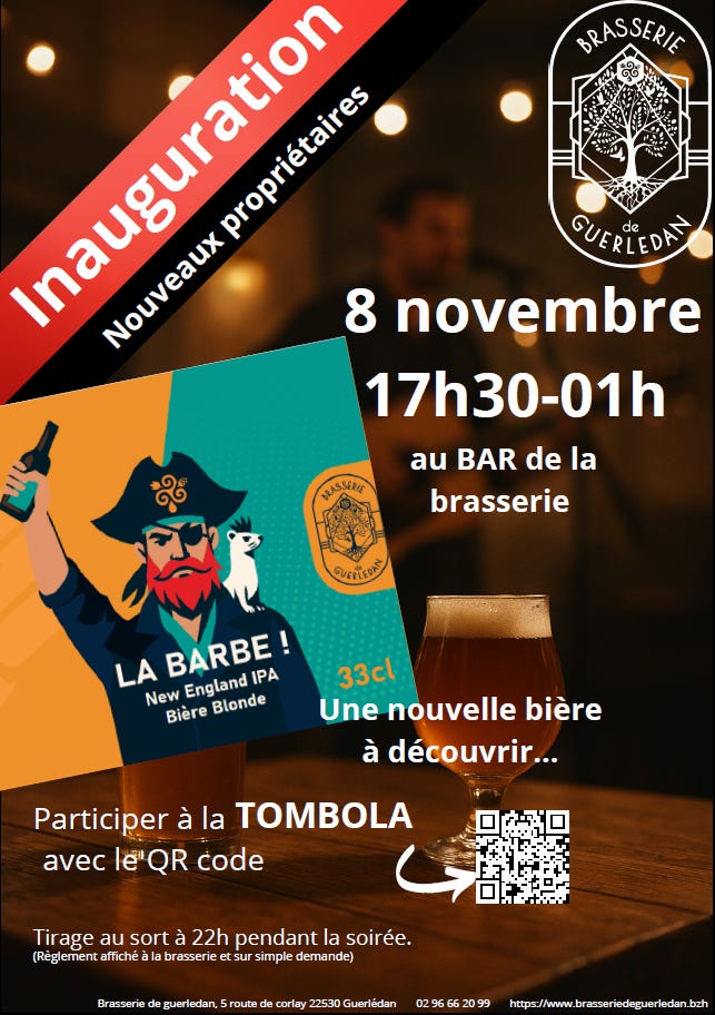 Ceci ressemble à ma dernière newsletter sur le carbone après 5 ans d’activité intense dans la transition écologique. Je lève le pied sur le sujet pour reprendre la micro brasserie locale de Mûr-de-Bretagne: la Brasserie de Guerledan.